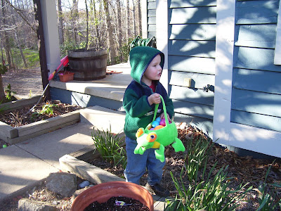 He was being Mr. Crabass this afternoon, and I suggested a picnic to jolly him up. We ended up sitting on a blanket the deck, eating grapes, cheese, and Girl Scout cookies, helping dinosaurs climb the Eiffel Tower. It was quite relaxing.